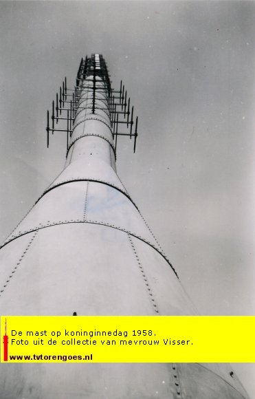 Voor de installatie waren ook enkele Franse technici naar Goes gekomen. Normaal werkten ze op de Eiffeltoren in Parijs, die tenslotte ook zendmast is.