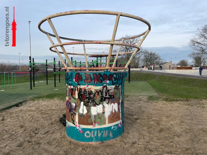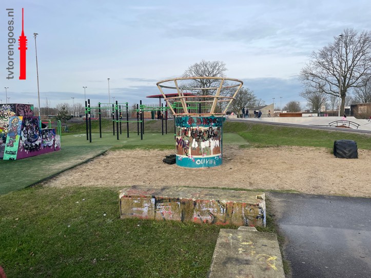 Tot iemand het idee krijgt om de top te gebruiken op het freerun-parcours vlakbij de wijk Goese Polder, dat later nog is uitgebreid tot urban sports-park. Er staan muren om tegen te klimmen, rekken om aan te hangen, en -sinds 2018- de oude tv-toren top. Klautermateriaal!