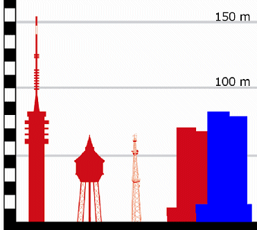 Oei, een rekenfoutje bij het tekenen. In de vergelijking van de toren Goes met de nog te bouwen woontoren zit een foutje. De woontoren wordt 87 meter hoog, op de tekening lijkt het of ie lager wordt. De onderstaande tekening is bijgewerkt.