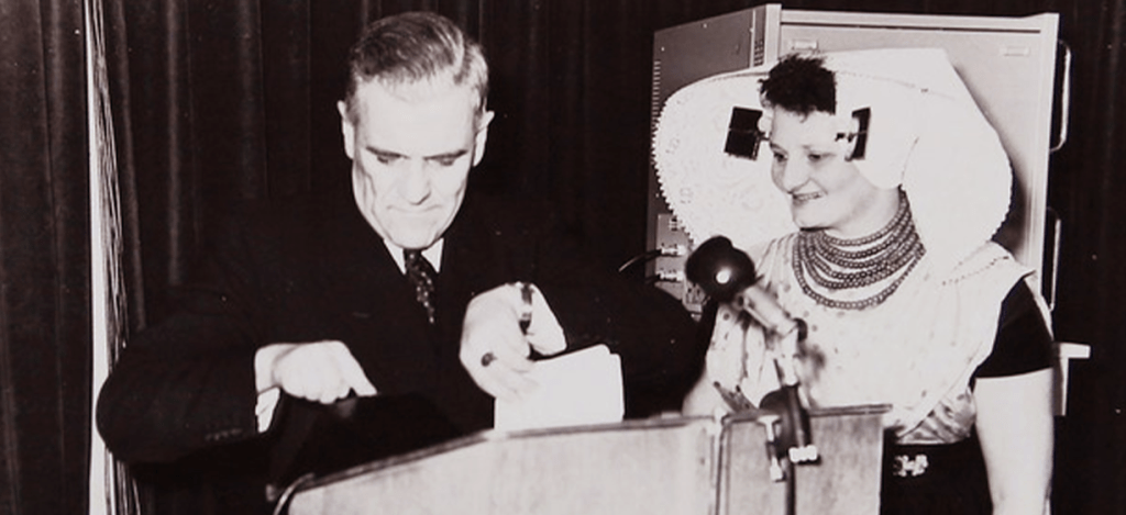De genodigden verzamelen zich ‘s middags in de toren in Goes. De voorzitter van de raad van beheer van zender-maatschappij Nozema, oud-minister-president Gerbrandy, is in Goes om de ingebruikstelling mee te maken. De toren in Goes is tenslotte de eerste betonnen tv-toren met een stalen zendmast van het land.