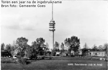 Nadat de inwoners van Goes maandenlang de bouw vande toren volgden en de testuitzendingen in heel Zeeland zijn bekenen, wordt de toren op 10 december 1957 officieel in gebruik genomen. ‘s Middags is er een bijeenkomst voor genodigden in de toren, ‘s avonds een rechtstreekse tv-uitzending vanuit Goes voor heel Nederland.